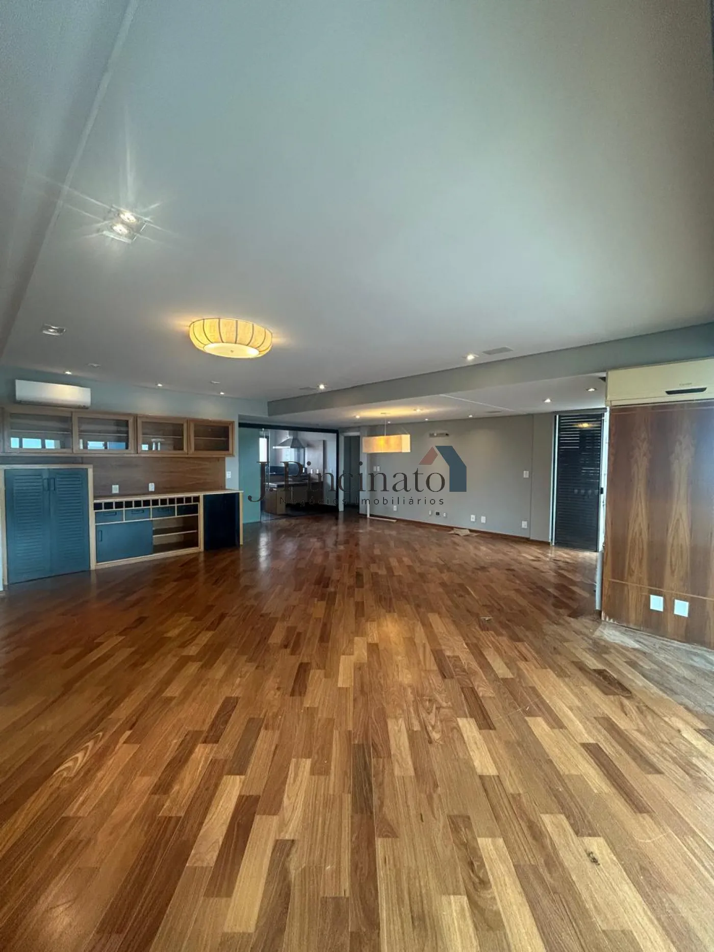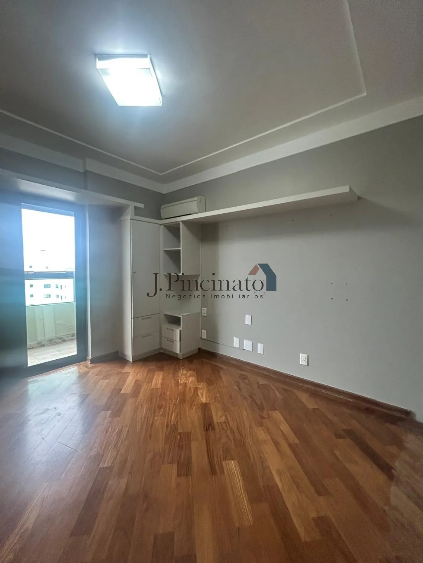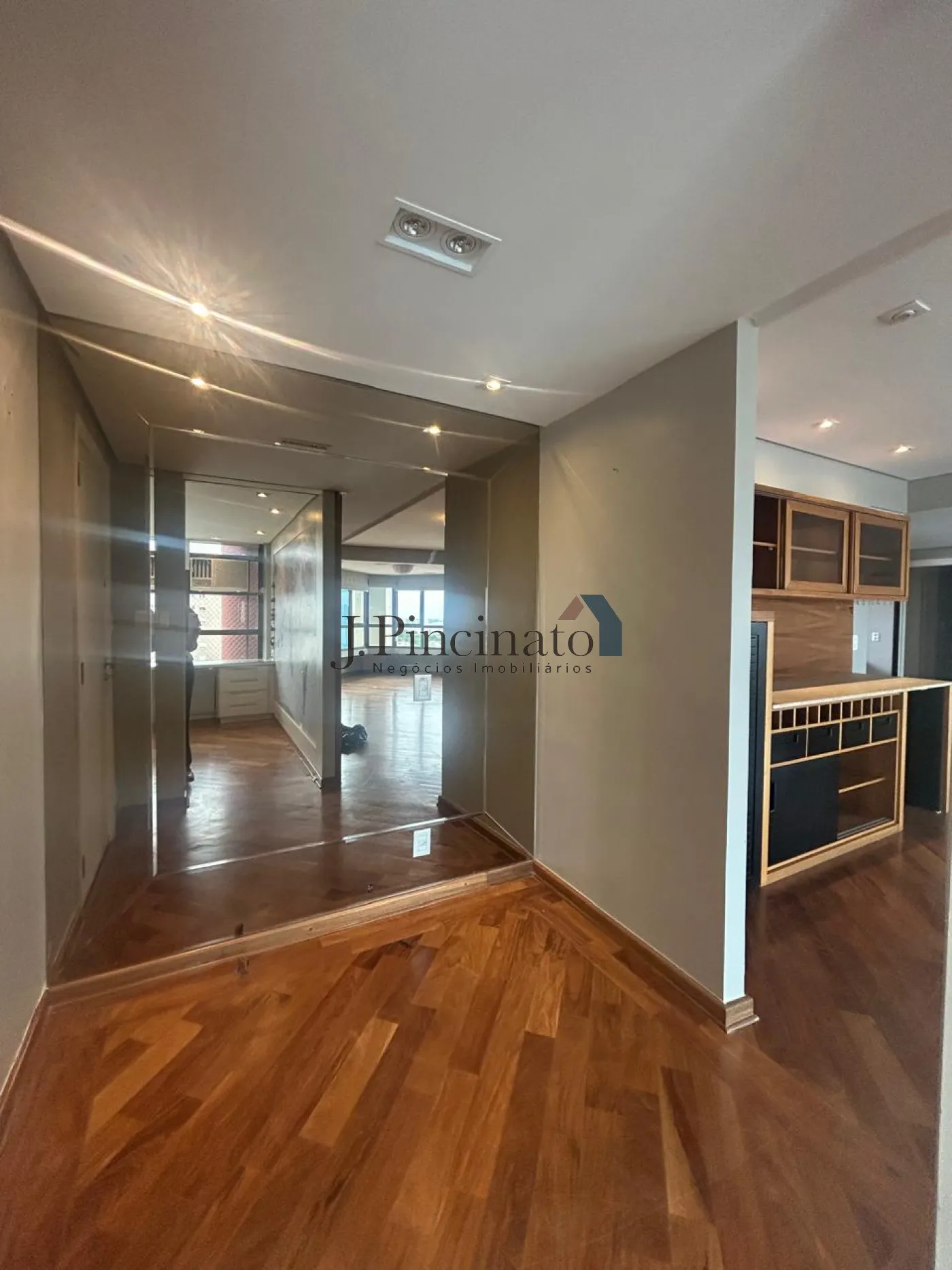 Apartamento modernizado, com piso de madeira, ar condicionado, entrada social e de serviço.