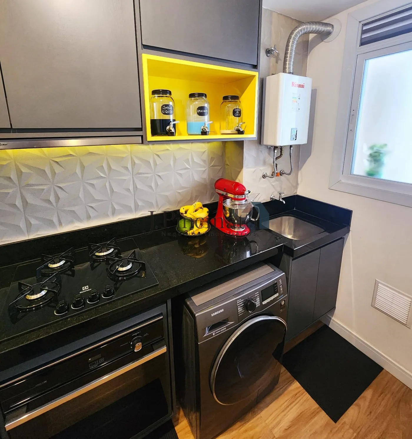 – Varanda gourmet com pia, churrasqueira elétrica e fechamento da sacada em vidro;