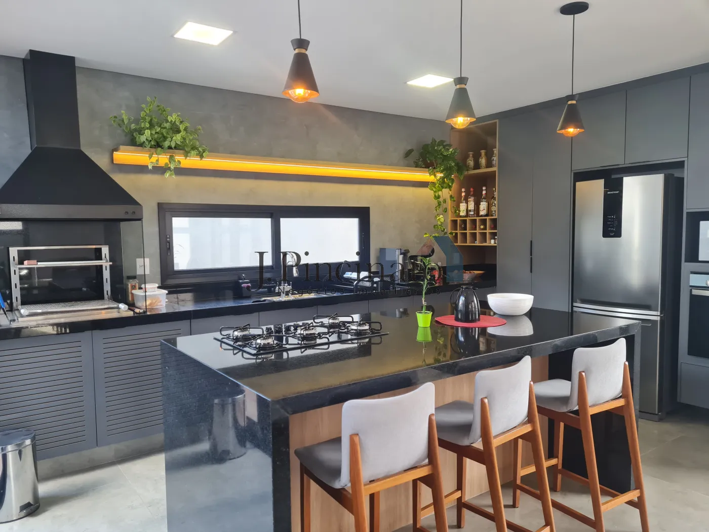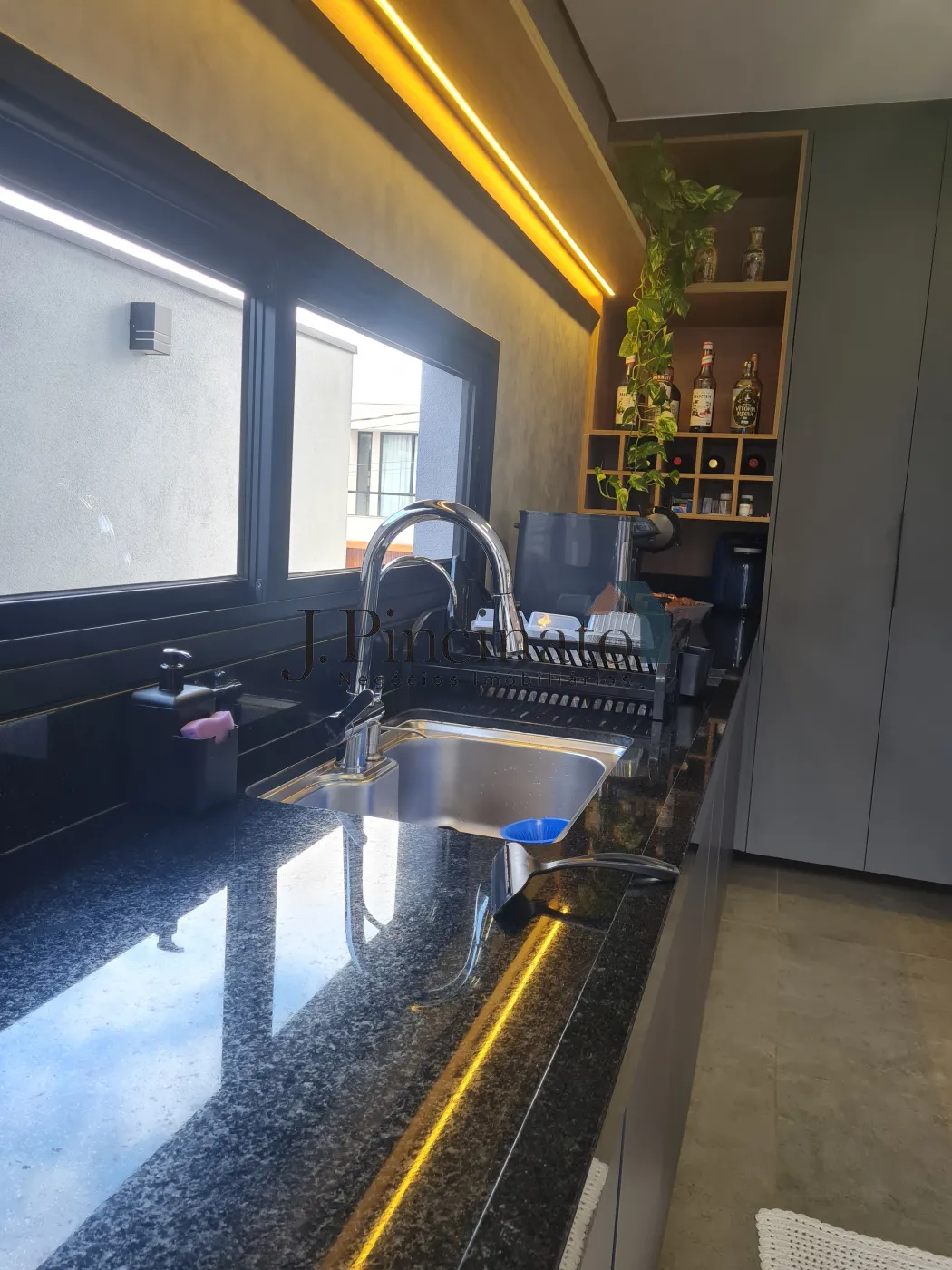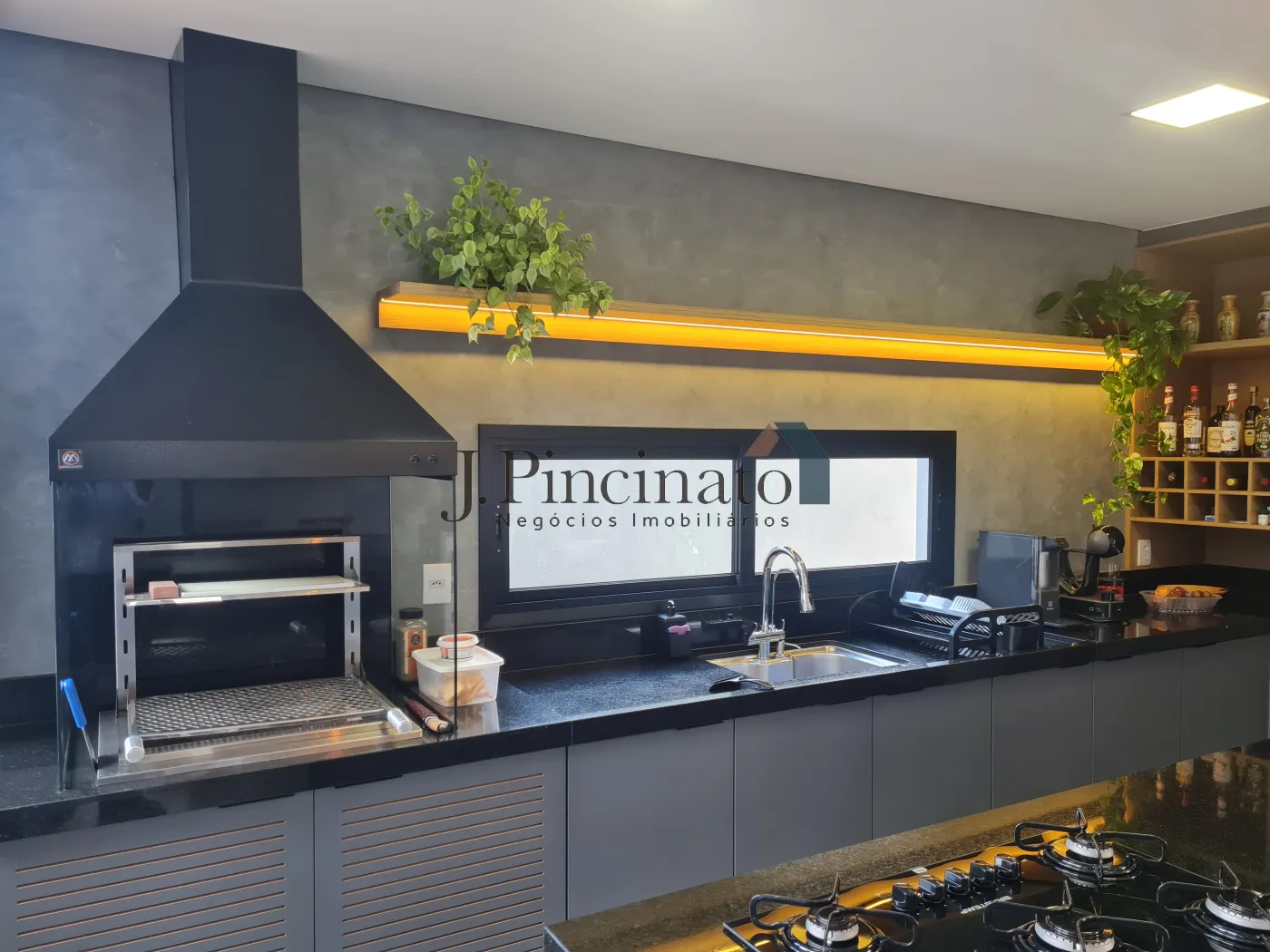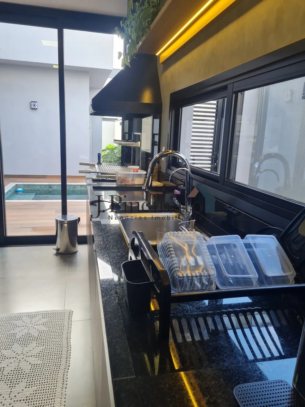 – Cozinha planejada com iluminação com posicionamento estratégico, integrada à sala de jantar e com acesso direto à área da piscina;