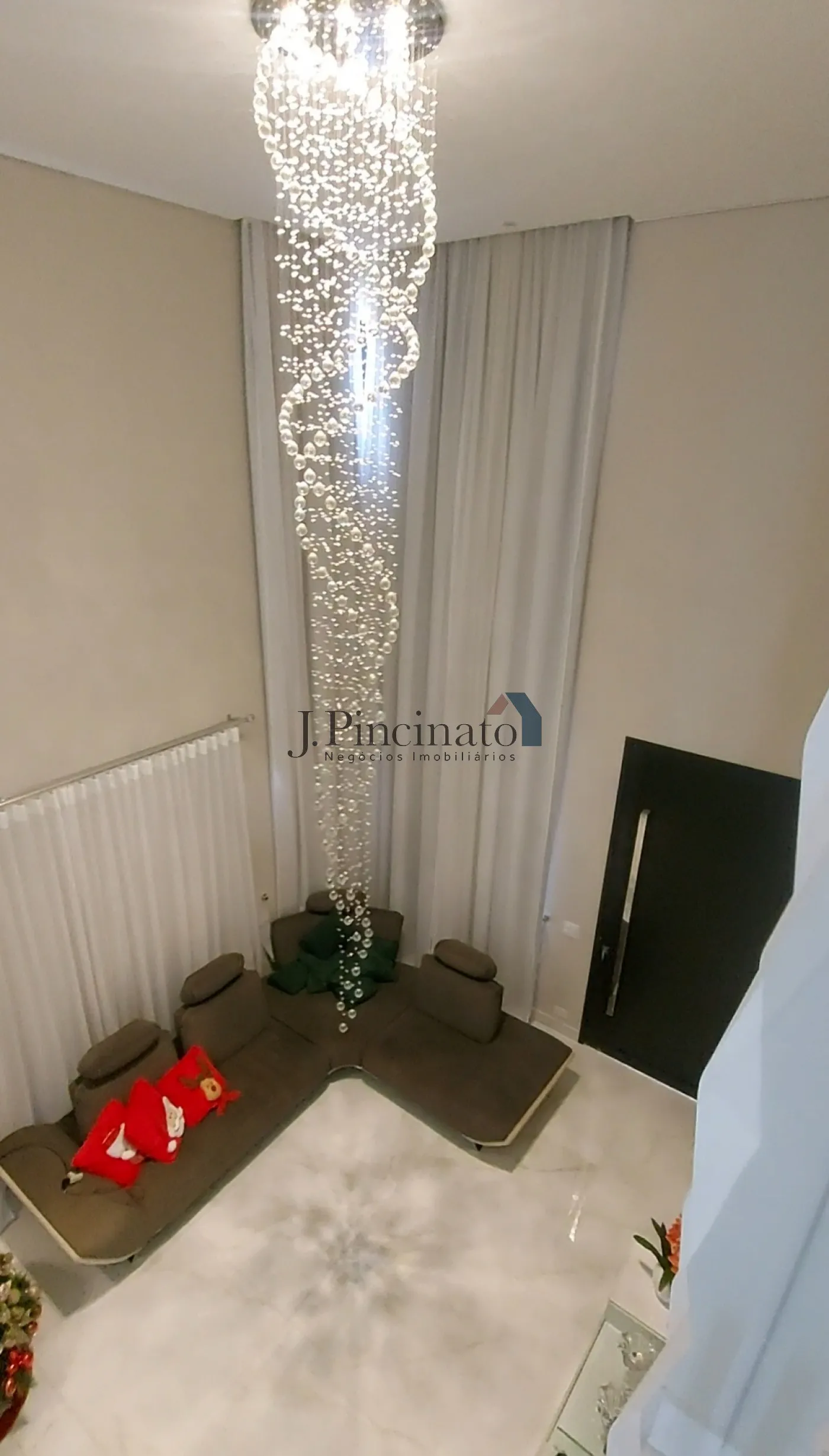 – Sala com pé direito duplo com lustre de 3.50m de comprimento;