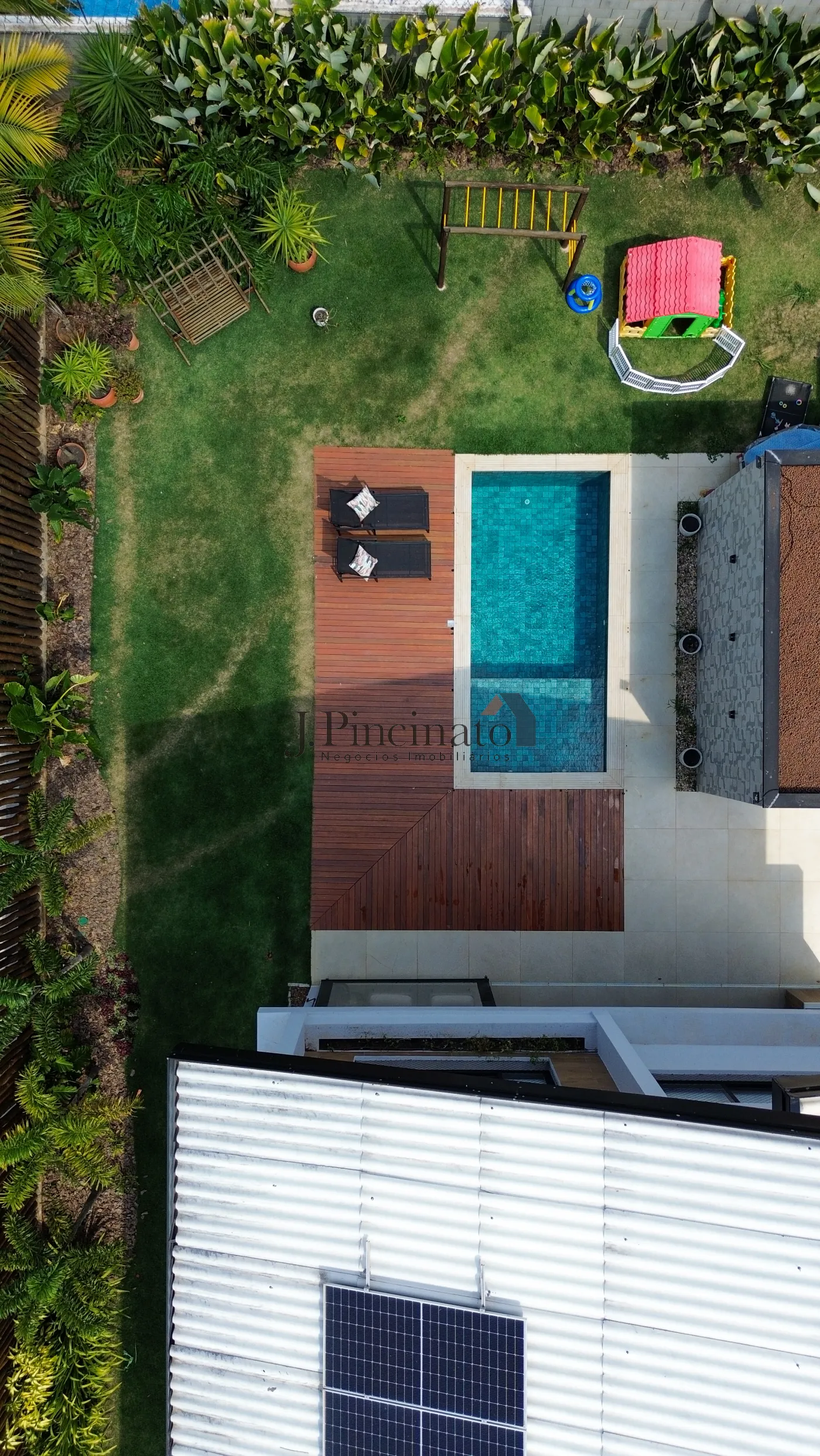 – Piscina com deck de madeira;