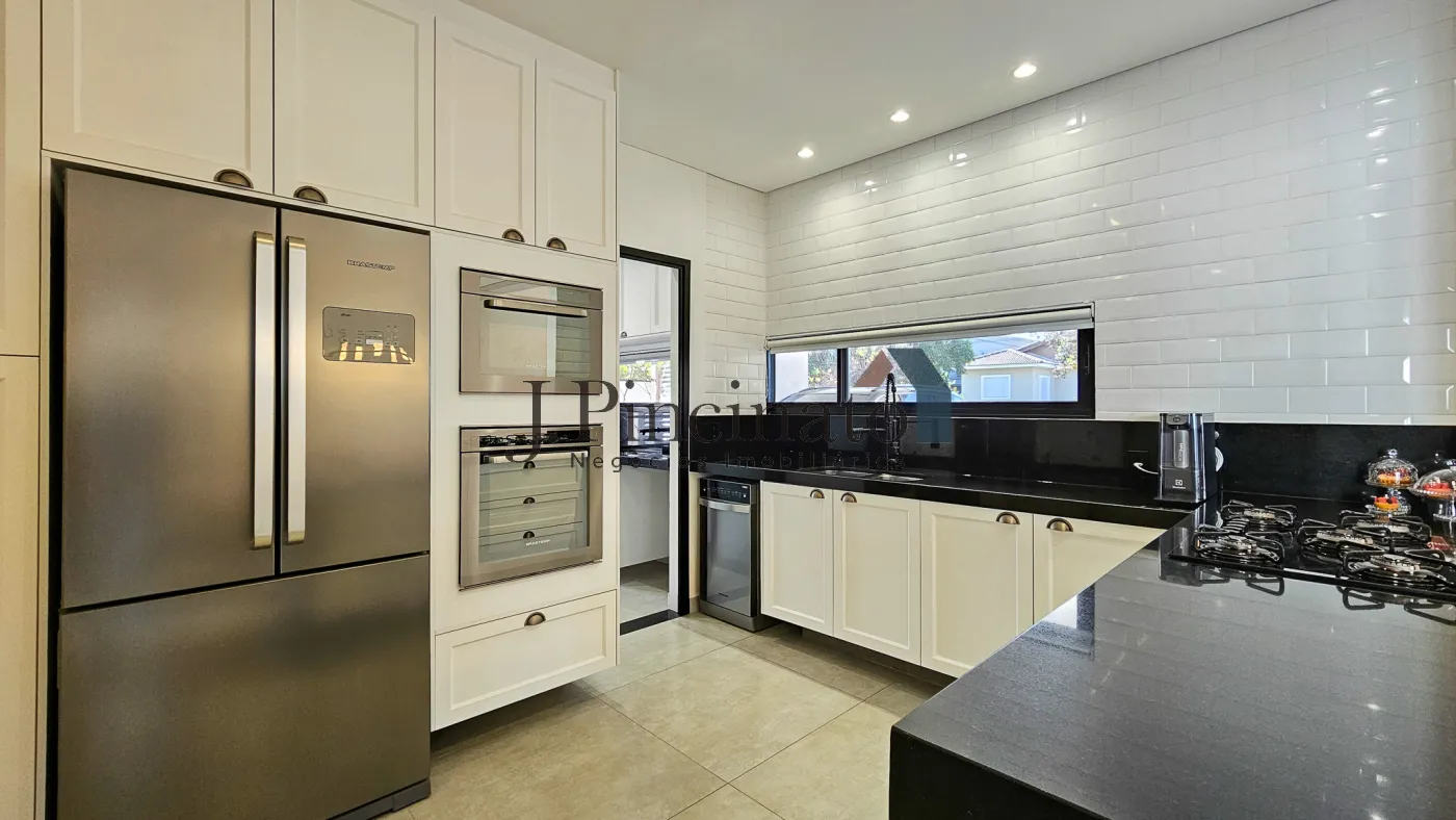 Possui pé direito de 4,40 metros, ar condicionado frio e quente nas 3 suítes, sala e área gourmet; armários embutidos feitos em laca em todos os ambientes;