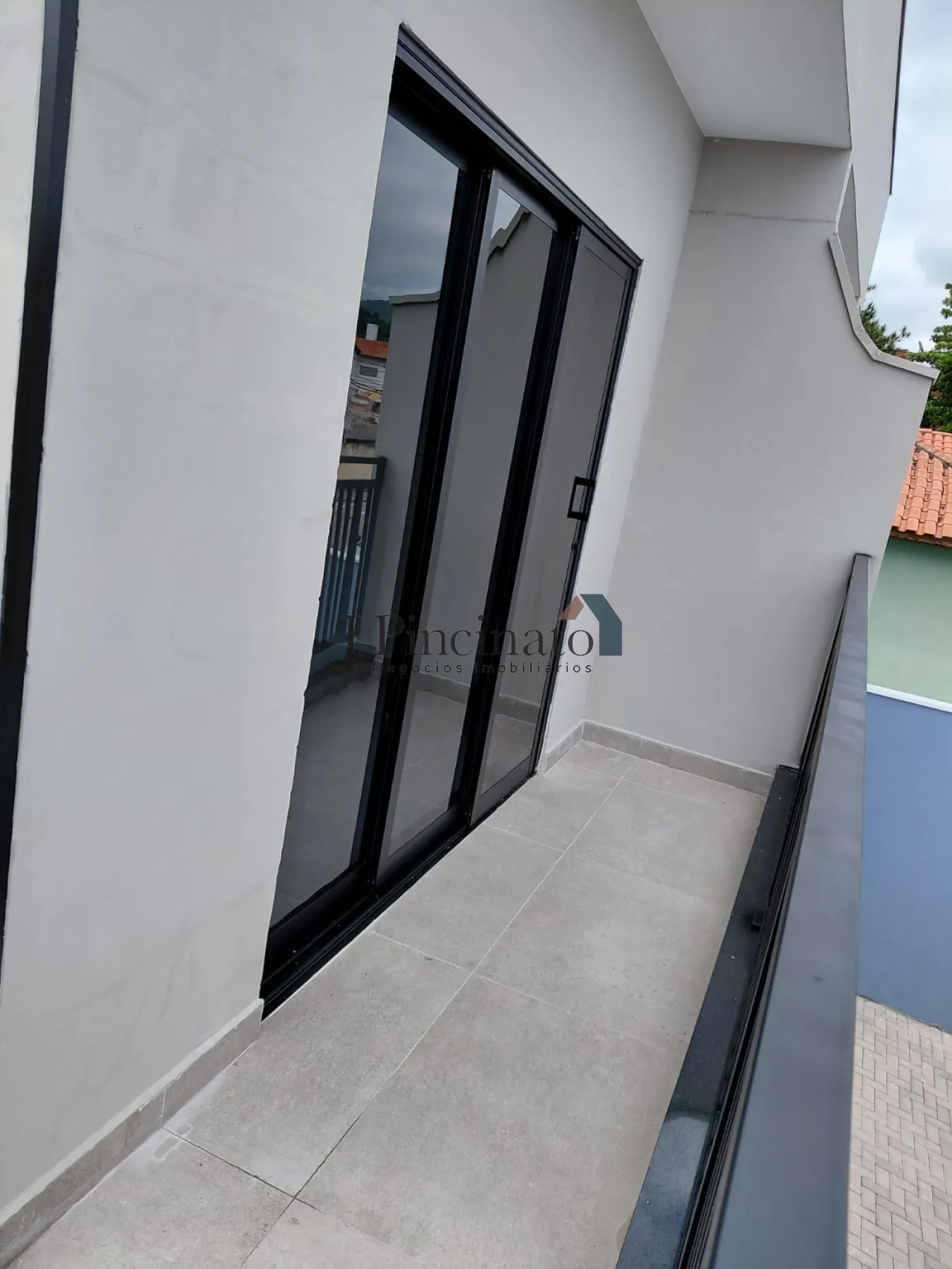 A entrada da garagem com portão eletrônico é compartilhada com as casas 02 e 03.