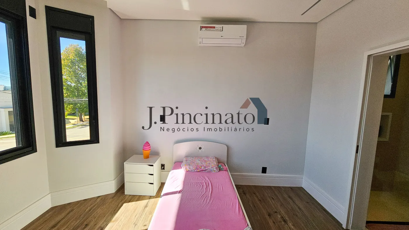 – 03 suítes com visa para área verde ao fundo do condomínio, com ar condicionado, closet e persianas automáticas, sendo a suíte master com banheira e chuveiro com 02 duchas;