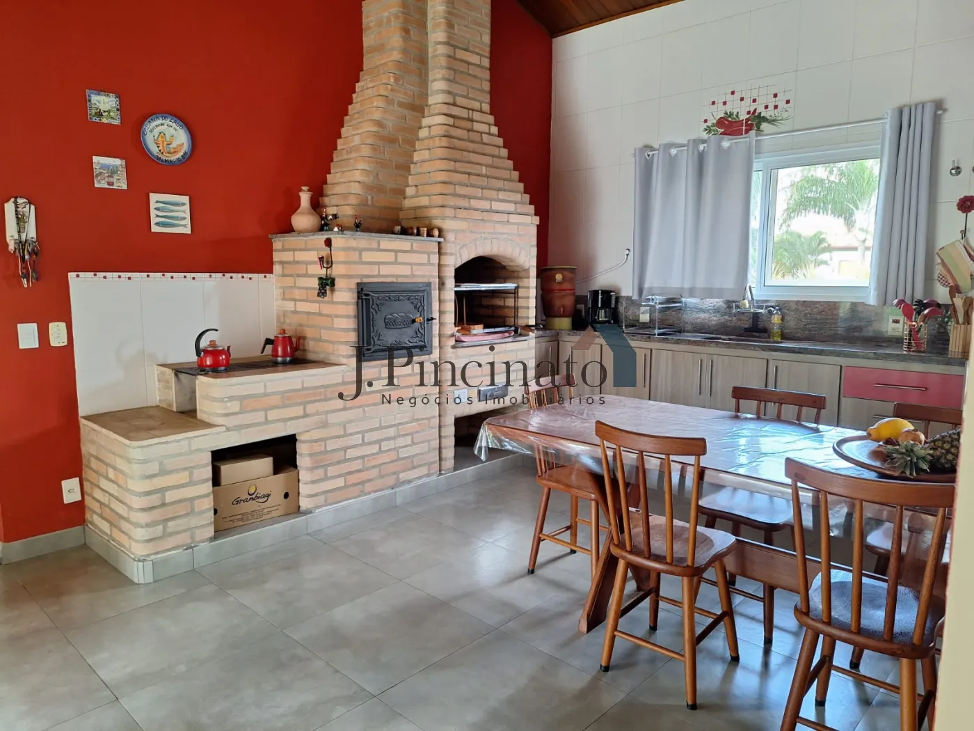 – Cozinha gourmet americana planejada com churrasqueira, forno caipira e fogão a lenha;